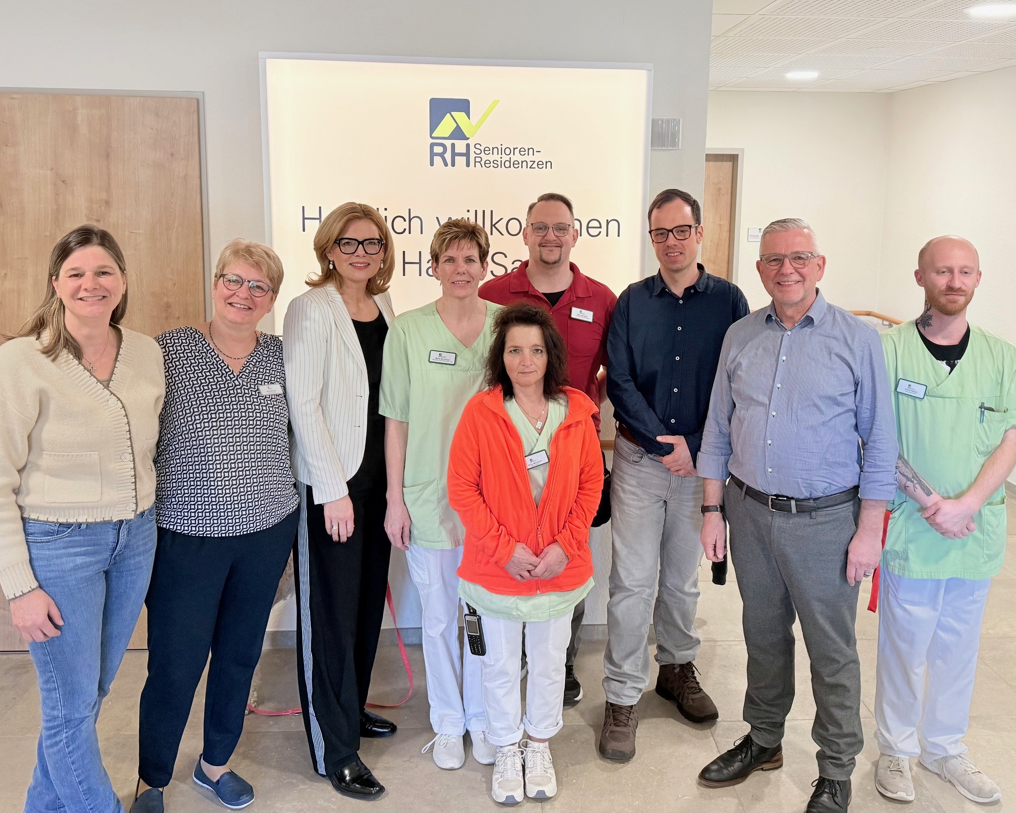 Die sitzungsfreien Wochen des Deutschen Bundestages nutzt die CDU-Politikerin und Bundestagspräsidentin für Termine in ihrem Wahlkreis. Neben Unternehmens- und Schulbesuchen, Bürgersprechstunden und der Teilnahme an Veranstaltungen stehen auch Besuche von Pflegeheimen und sozialen Einrichtungen auf ihrer festen Agenda. Gemeinsam mit der künftigen Verbandsgemeindebürgermeisterin Andrea Silvestri schaute sie jetzt im Haus Sarah vorbei, um mit Bewohnerinnen, Bewohnern und Mitarbeitenden ins Gespräch zu kommen. „Der direkte Austausch ist durch nichts zu ersetzen. Wer Pflege verbessern will, muss die Realität vor Ort kennen“, betont die Abgeordnete.